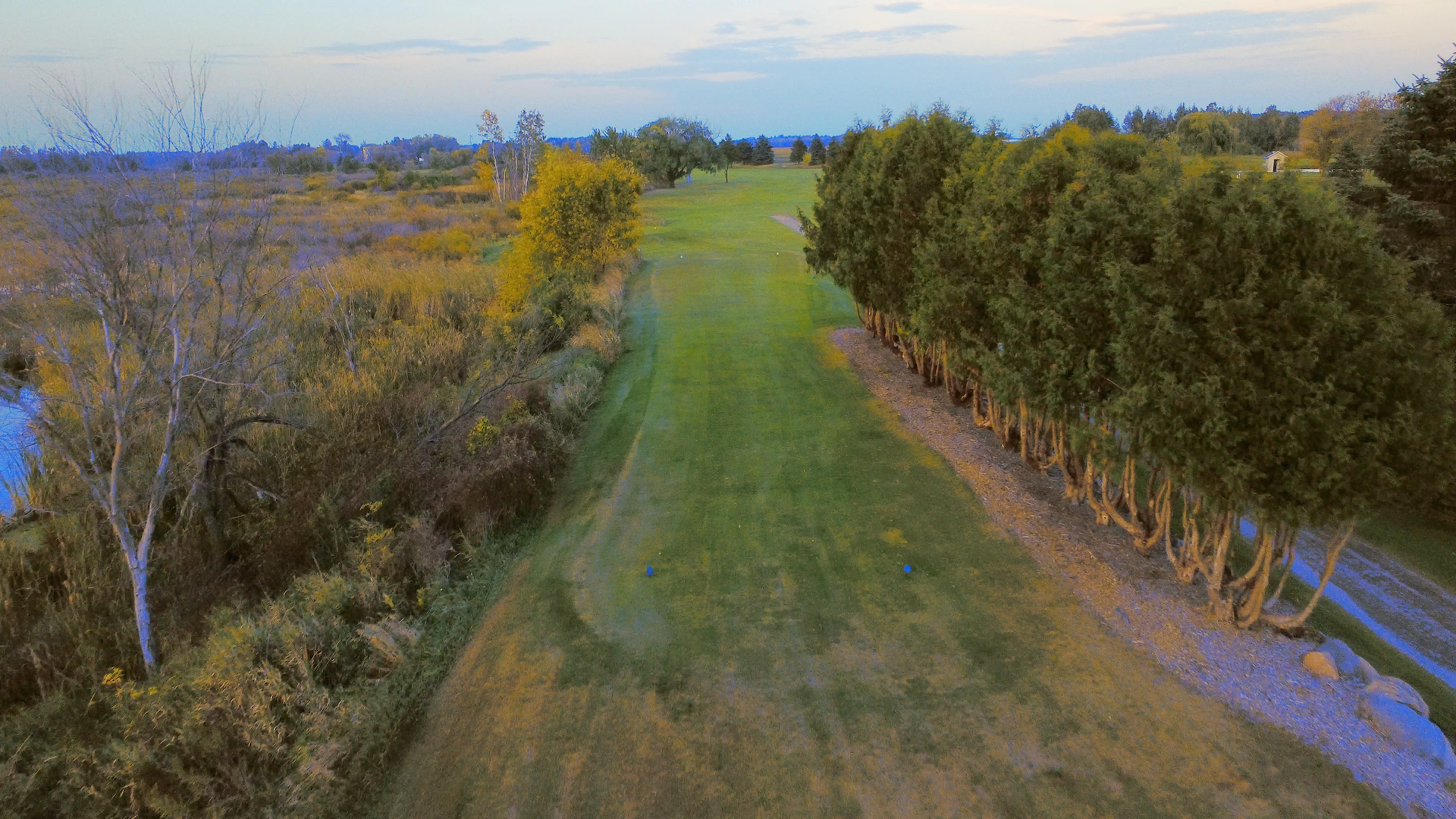 A shorter but strategic hole that tempts bold players. The fairway runs straight with trees tight along the left and open ground to the right. Sand traps about three-quarters of the way down challenge aggressive drives.